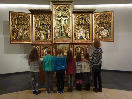 Auf der Kulturspur in Münster, ein Angebot des Kreativ-Hauses Münster, besuchte die Theaterpädagogin Gabriele Jasper mit sechs Kindern das Euthymiazentrum, um sich über den Altar, Schwester M. Euthymia und unsere Ordensgeschichte informieren zu lassen.