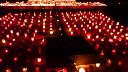 Diese Lichter werden vonebenso hunderten Menschen dort hingestellt: in Erinnerung, inTrauer, Bitte, Hoffnung. Sie brennen als Dank für Menschen, die schon zu den Heiligen im Himmel und doch auch bleibend zu uns gehören.