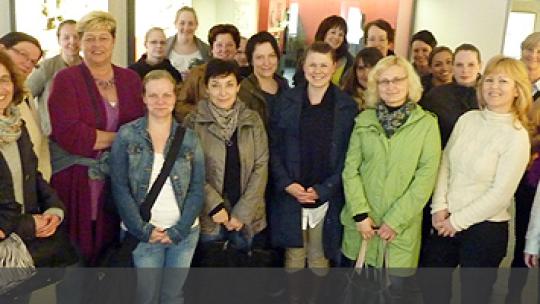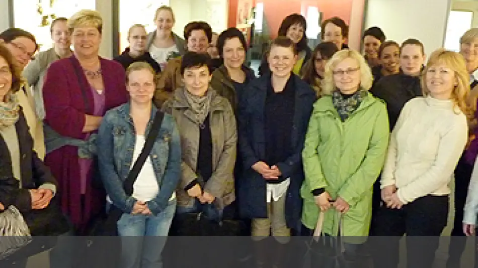 Es sind Teilnehmerinnen des ersten Kurses der Teilzeitausbildung, die vier Jahre dauert. Alle Frauen haben Familie mit Kindern. Sie erlernen den Pflegeberuf im Clemenshospital, in der Raphaelsklinik und im Herz-Jesu-Krankenhaus in Hiltrup. Es war eine sehr lebendige Begegnung. Die Entstehung der Gemeinschaft der Clemensschwestern und das Leben von Schwester M. Euthymia verknüpfte sich mit Ihren Gedanken zu der jetzt neu begonnene Berufsausbildung.