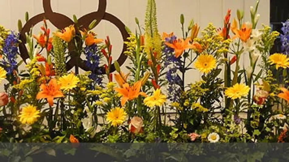 Ein Blick in die festlich geschmückte Mutterhaus-Kirche: 17 verschiedene Blumensorten. – Das Fest konnte beginnen!