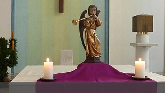 Die Einladung, versehen mit dem Bild dieses kleinen Posaunenengels, rief die MitarbeiterInnen und Schwestern des Mutterhauses am Nikolaustag zur Adventfeier zusammen.