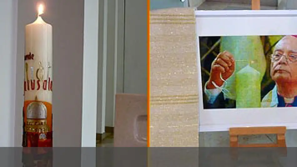 Wir haben die Kerze in unserer Mutterhauskapelle stehen, wo sie für den Verstorbenen, für das Bistum Münster, das Heilige Land – und für alle Anliegen brennt, die damit verbunden sind.