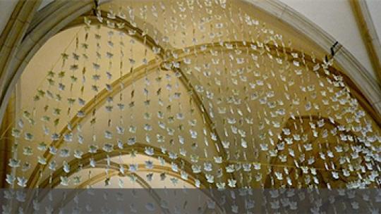 Am 1. Advent begrüßten diese Gotteslob-Engel alle Besucher des Paulus-Domes, die durch das “Paradies” eintraten. Beim ersten Singen aus dem neuen Gotteslob war es so, als empfingen sie uns mit ihrem Gesang. Es herrschte eine festliche und frohe Stimmung. Ein gelungener Auftakt für das neue Gotteslob und für den Weg durch den Advent!