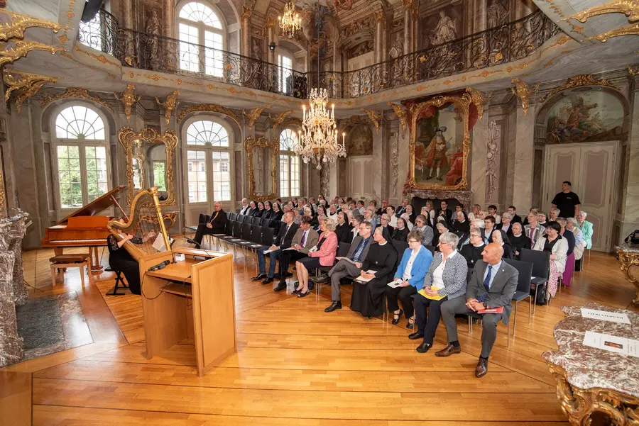 Mit einem Festakt am 01. Juli 2023 im Erbdrostenhof gedachten viele geladene Gäste mit uns Clemensschwestern unseres Stifters Clemens August Freiherr Droste zu Vischering. Anlässlich seines 250. Geburtstages fand am 21. Januar 2023 ein Festhochamt im St. Paulus-Dom zu Münster statt, dem Ort, an dem sich sein Grab befindet. Im Festhochamt wurden sein Leben und Wirken gewürdigt. Im prächtigen Festsaal des Erbdrostenhofes zu Münster, seiner Geburtsstätte, wollten wir die Zeit, in der er gelebt hat, aufleben lassen, so Schw. Angelique, die die Hauptverantwortung für die Organisation übernommen hatte. Wir fühlten uns sehr geehrt, diesen Festakt an diesem besonderen Ort und in Anwesenheit des Erbdrosten zu Vischering und seiner Mutter, der Gräfin Droste zu Vischering, feiern zu dürfen. Noch einmal in diesem Jahr dankten wir unserem Stifter in besonderer Weise.