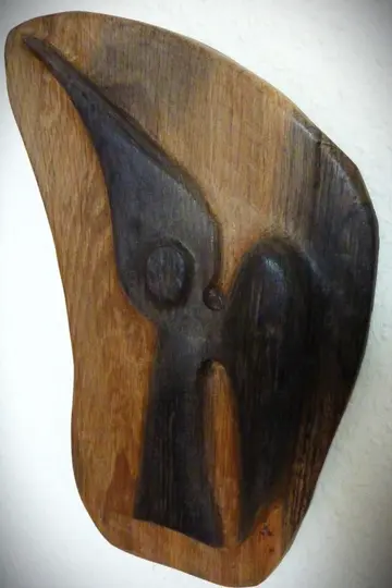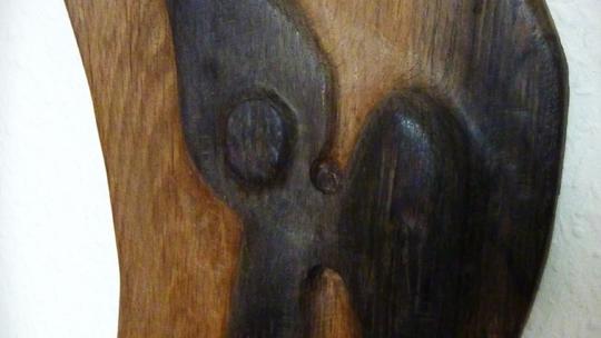Dieser Engel wurde geschnitzt aus Mooreiche, einem uralten Eichenstamm. Im Holz wurde vom Künstler während seines Schaffens das Eigene entdeckt, freigelegt und in Form gebracht. Alte und junge Schichten gaben dem Engel seine Form. Welche Kunst: Ein vorhandenes Angebot ent-decken und ihm Form und Gestalt geben!