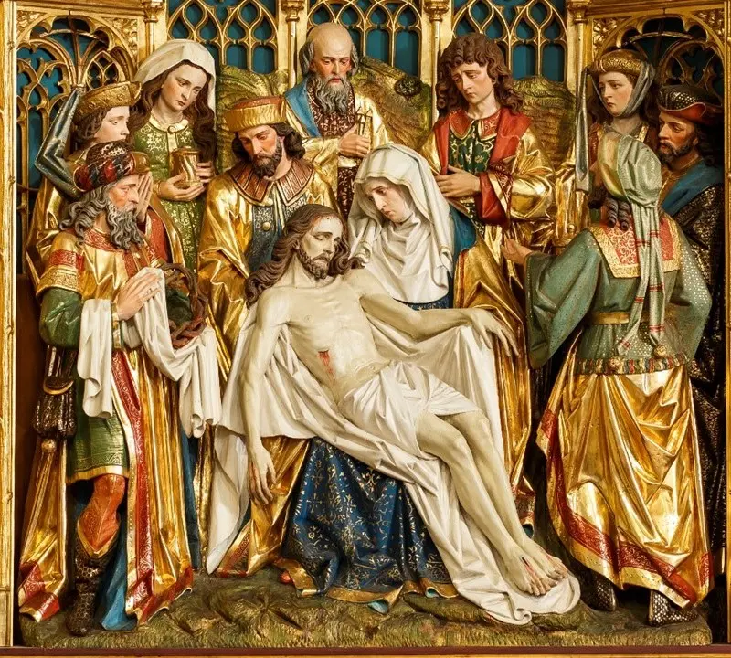(Bilder: Ausschnitt aus dem Altar der sieben Schmerzen Mariens im Euthymia-Zentrum)