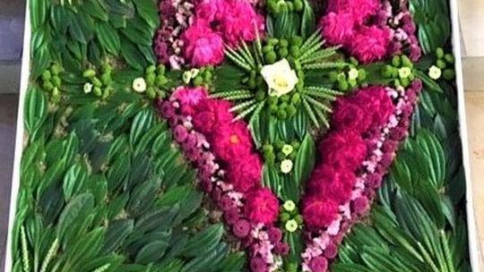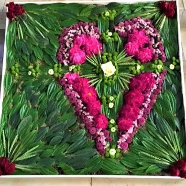 Dieser kleine Blumenteppich liegt seit dem Fronleichnamsfest vor dem Altar in unserer Mutterhauskirche. Gestaltet wurde er von Schwestern und Mitarbeiterinnen unserer Pflegestation. Dieses Herz will uns das Herz Jesu in seiner Schönheit, Kraft und Liebe vor Augen führen, dass wir an diesem Festtag feiern. Dieser Blumenteppich lädt ein, unser eigenes Herz zu schmücken mit den Angeboten der Seligpreisungen, die wir genau in diesen Tagen im Evangelium hörten und hier als Fürbitt-Gebet lesen: