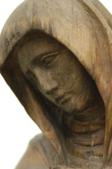 Maria schaut voll Liebe auf ihren Sohn. Auf seinem Kreuzweg sind sie einander begegnet. Sie hat mit ansehen müssen, wie er das schwere Kreuz schleppte. Er muss weitergehen, an ihr vorbei und sie weinend am Weg stehen lassen. Sie muss ihren Schmerz alleine tragen.